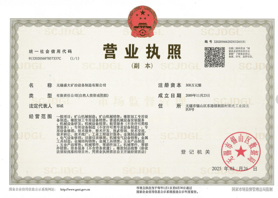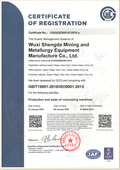 无锡盛大矿冶设备制造有限公司成立于2009年,传承无锡硫化机专业技术,历经多年的风雨兼程和顽强拼搏,令公司在中国硫化机行业中脱颖而出,成为无锡市“AAA”级重合同、守信用企业。我公司主要生产经营:各类型电热式橡胶输送带接头硫化机、修补器、胶水胶料、及配套工具等专业产品。