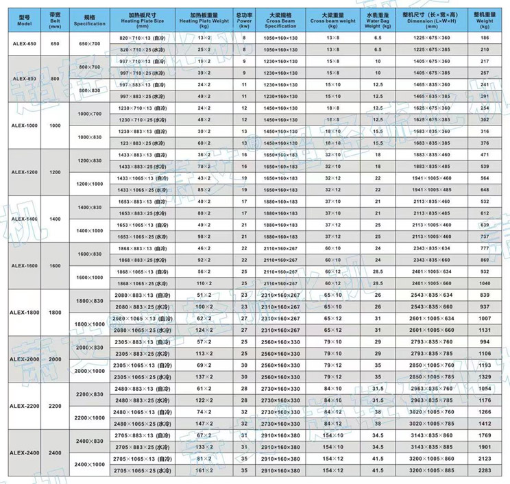 系列“ALEX-萧艾®超轻硫化机”规格参数如下:
